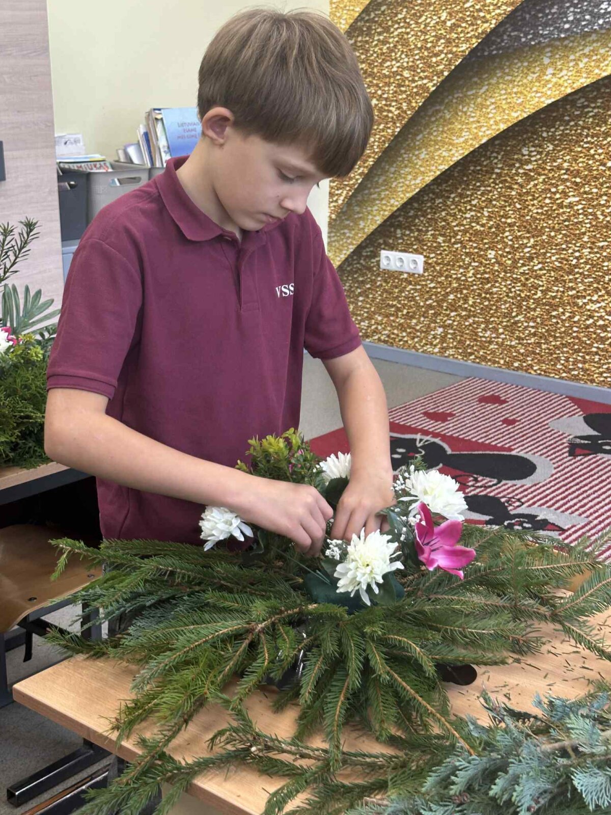 3b klasės mokiniai dalyvavo integruotoje technologijų ir tikybos pamokoje, skirtoje Vėlinių minėjimui. Pamokos metu vaikai aptarė, kas yra Vėlinės, kodėl lankome kapus ir kaip galime parodyti pagarbą išėjusiems. Mokiniai gamino gėlių puokšteles vienišiems, apleistiems kapams. Vėliau visi kartu aplankė apleistus kapelius, juos sutvarkė, papuošė savo rankų darbo puokštelėmis ir sukalbėjo maldą už mirusiuosius.