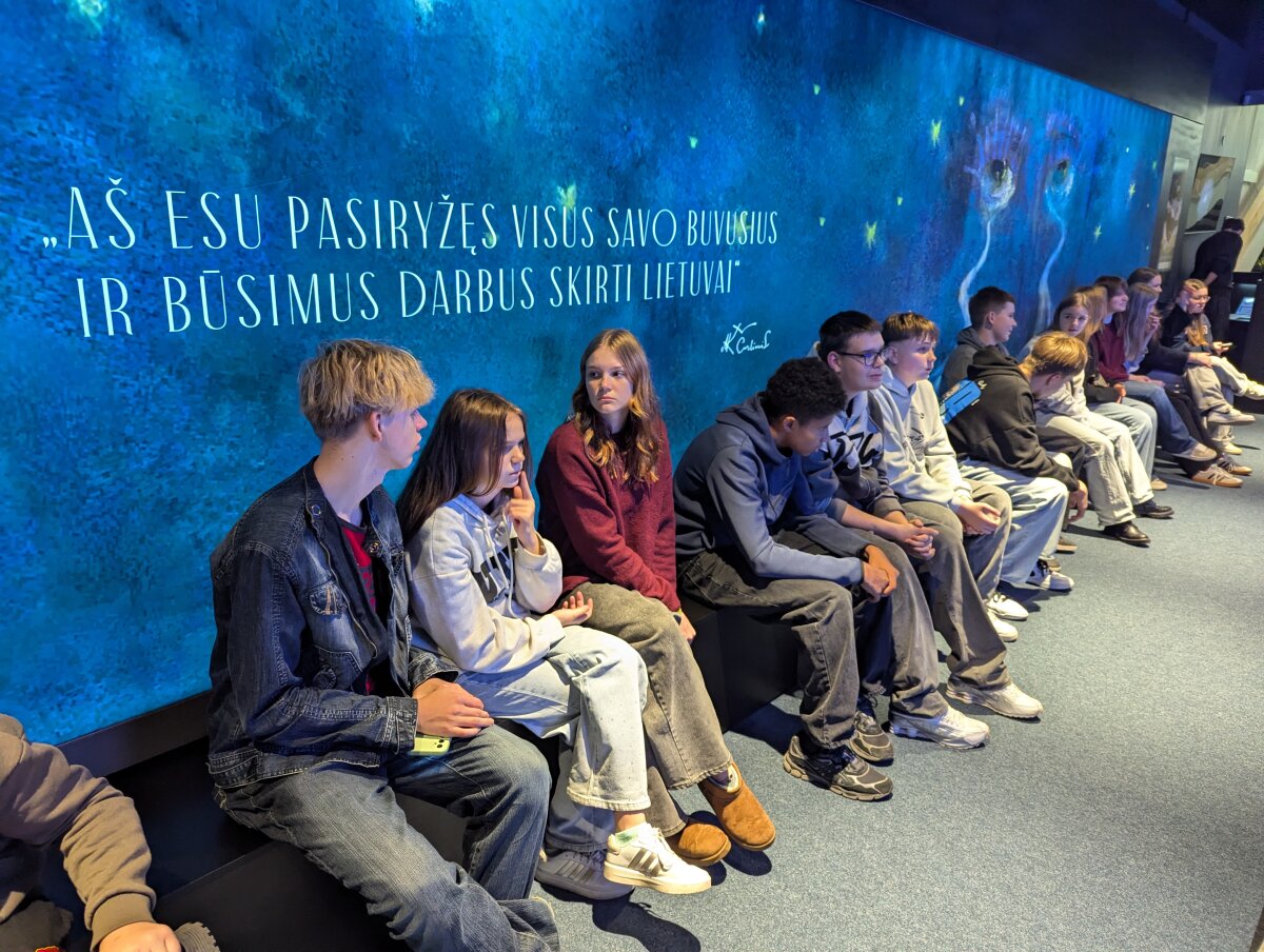 Atvykę į Kauną pirmiausia mokiniai pasivaikščiojo po senamiestį, susipažino su jo istorija ir architektūra. Po to aštuntokai apsilankė Maironio lietuvių literatūros muziejuje, kuriame ekskursiją apie Maironio buto interjerą ir meno kūrinius vedė gidė Dovilė Pangonytė. Ekskursijos metu buvo papasakota, kodėl kiekvienas Maironio kambarys atrodo vis kitaip, aptartas sienų dekoras ir baldų stilistika, taip pat kalbėta apie meno kūrinius, kurių išlikusi nemaža kolekcija, paaiškinta jų atkeliavimo į rūmus istorija, atskleista, kuriuos Maironis vertino ir mėgo labiausiai. Vėliau mokiniai buvo pakviesti atlikti užduotis Kahoot programėlėje ir taip įsivertinti savo žinias apie Maironį.