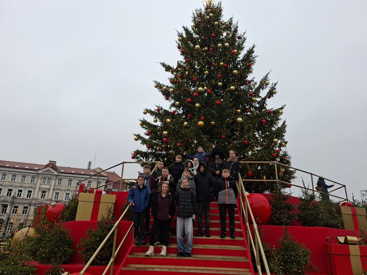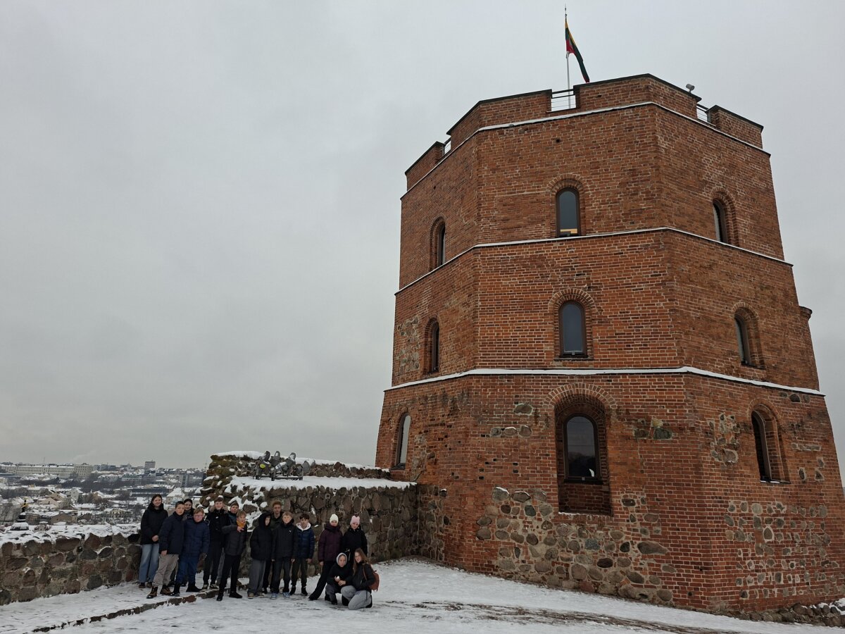 Pirmasis kelionės tikslas Gedimino pilies bokštas, nuo kurio atsiveria visas senamiesčio grožis. Lipdami į kalną, mokiniai prisiminė istorijos pamokose girdėtas legendas, o pakilę į viršų galėjo įsitikinti, kodėl ši vieta vienas svarbiausių Lietuvos simbolių. Vėliau mokiniai apsilankė Vilniaus Katedroje. Išėję į Katedros aikštę, visi grožėjosi įspūdinga Vilniaus kalėdų eglute bei aplankė šventinį kalėdinį miestelį, džiuginusį šviesomis, muzika ir žiemiška atmosfera.