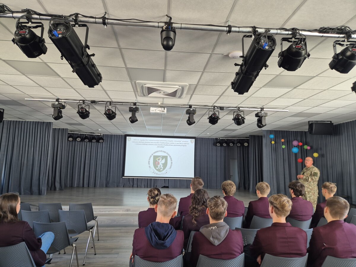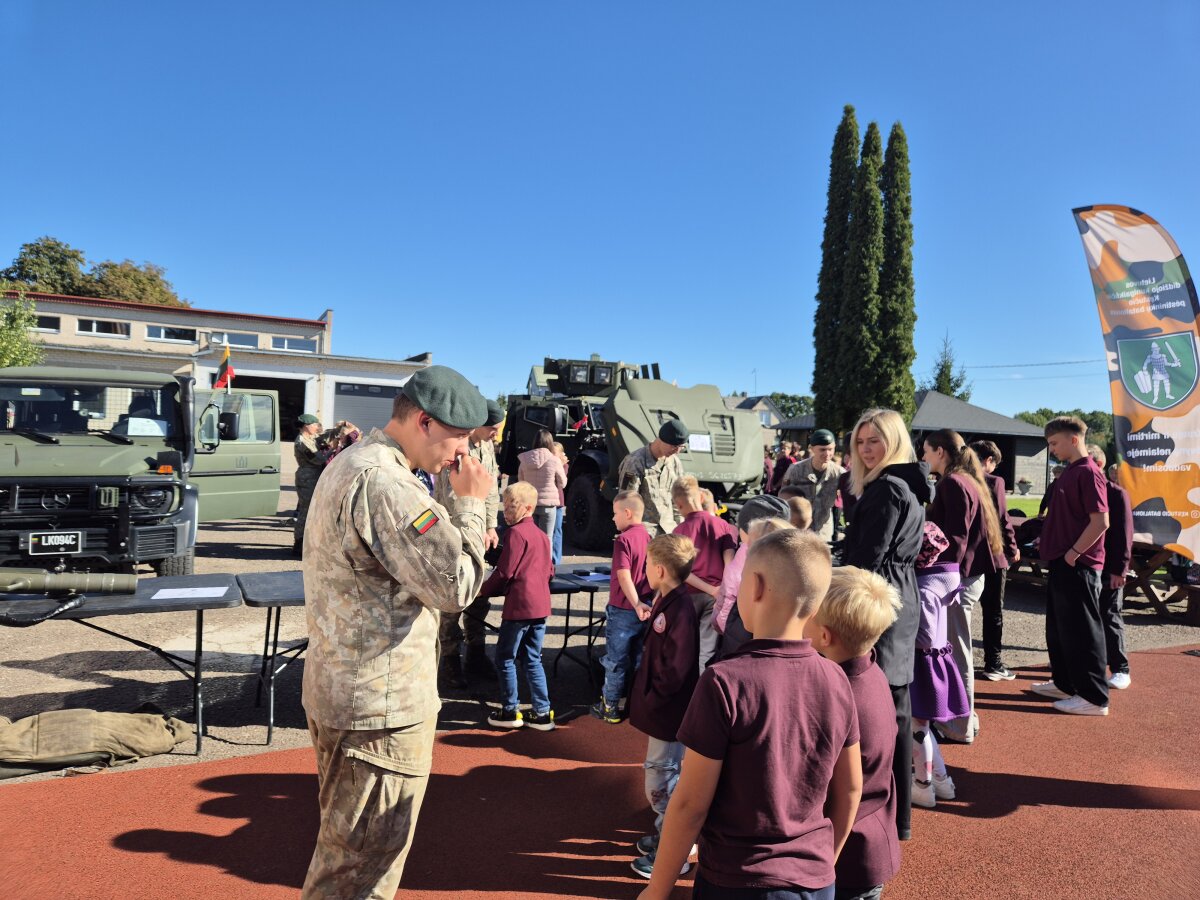 Šiandien mūsų gimnazijoje svečiavosi Lietuvos kunigaikščio Kęstučio pėstininkų bataliono kariai. Tai buvo išskirtinė istorijos ir krašto gynybos pamoka, kurios metu mokiniai turėjo galimybę susipažinti su kariuomenės amunicija, technika bei kario kasdienybe. Taip pat jie klausėsi įdomios paskaitos apie Salaspilio mūšį ir Lietuvos didįjį etmoną Joną Karolį Chodkevičių.