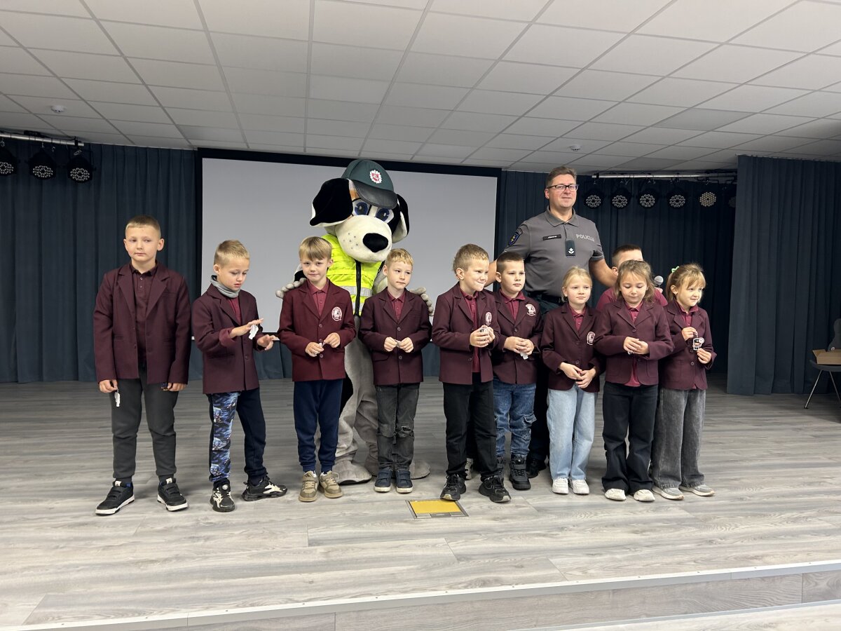Baigiantis 5-8 klasių valandėlės laikui mokiniai svečiui išsakė lūkesčius, aptarė rūpimus klausimus ir numatė kitų susitikimų su prevencijos pareigūnu temas. Na, o pradinukus saugiems mokslo metams gerai nuteikė susitikimo pabaigoje salėje pasirodęs Amsis, kuris kartu su D. Jonaičiu visiems pirmokams padovanojo atšvaitus ir sudalyvavo linksmoje fotosesijoje.