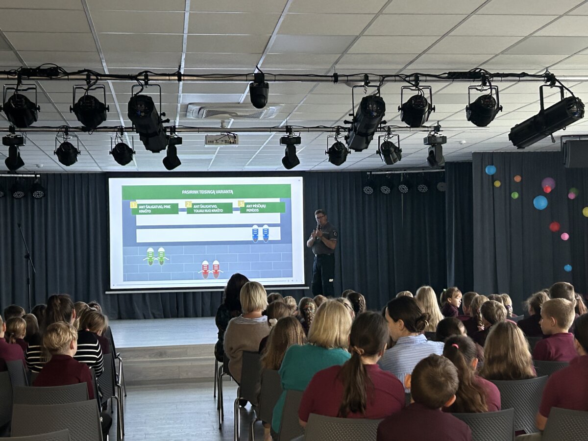 Dėkojame pareigūnui Dariui Jonaičiui už naudingą susitikimą. Būkime saugūs ir sveiki!