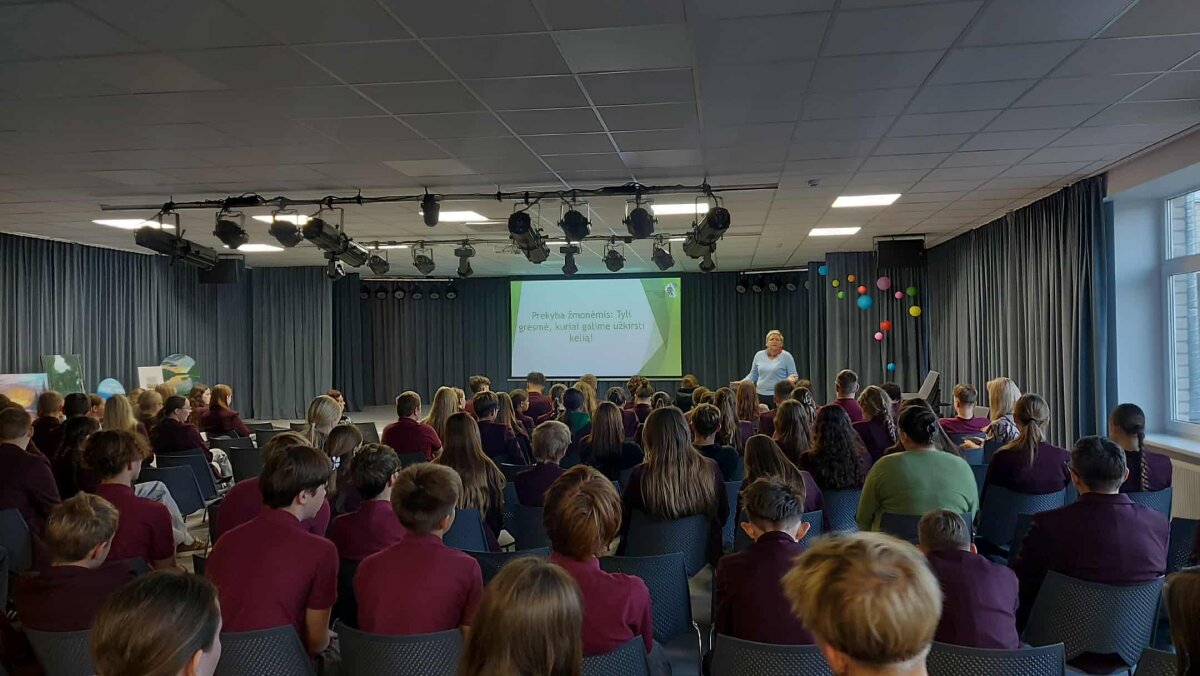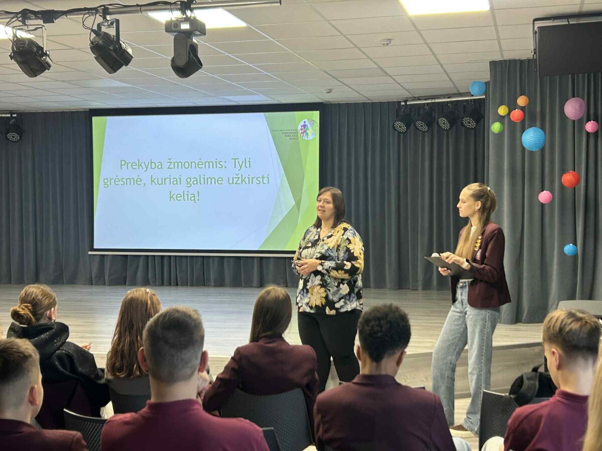 Šiandien dalį klasės valandėlės skyrėme socialiniams–prevenciniams dalykams: 7–8 ir I–II klasių mokiniai dalyvavo paskaitoje apie prekybą žmonėmis. Pranešimą skaitė IIa klasės mokinė, gimnazijos jaunoji sveikatos ambasadorė Danielė Petkevičiūtė. Tema pasirinkta ne tik todėl, kad spalio 18 d. minima Europos Sąjungos kovos su prekyba žmonėmis diena, bet ir dėl jos ypatingo aktualumo vaikams bei paaugliams.