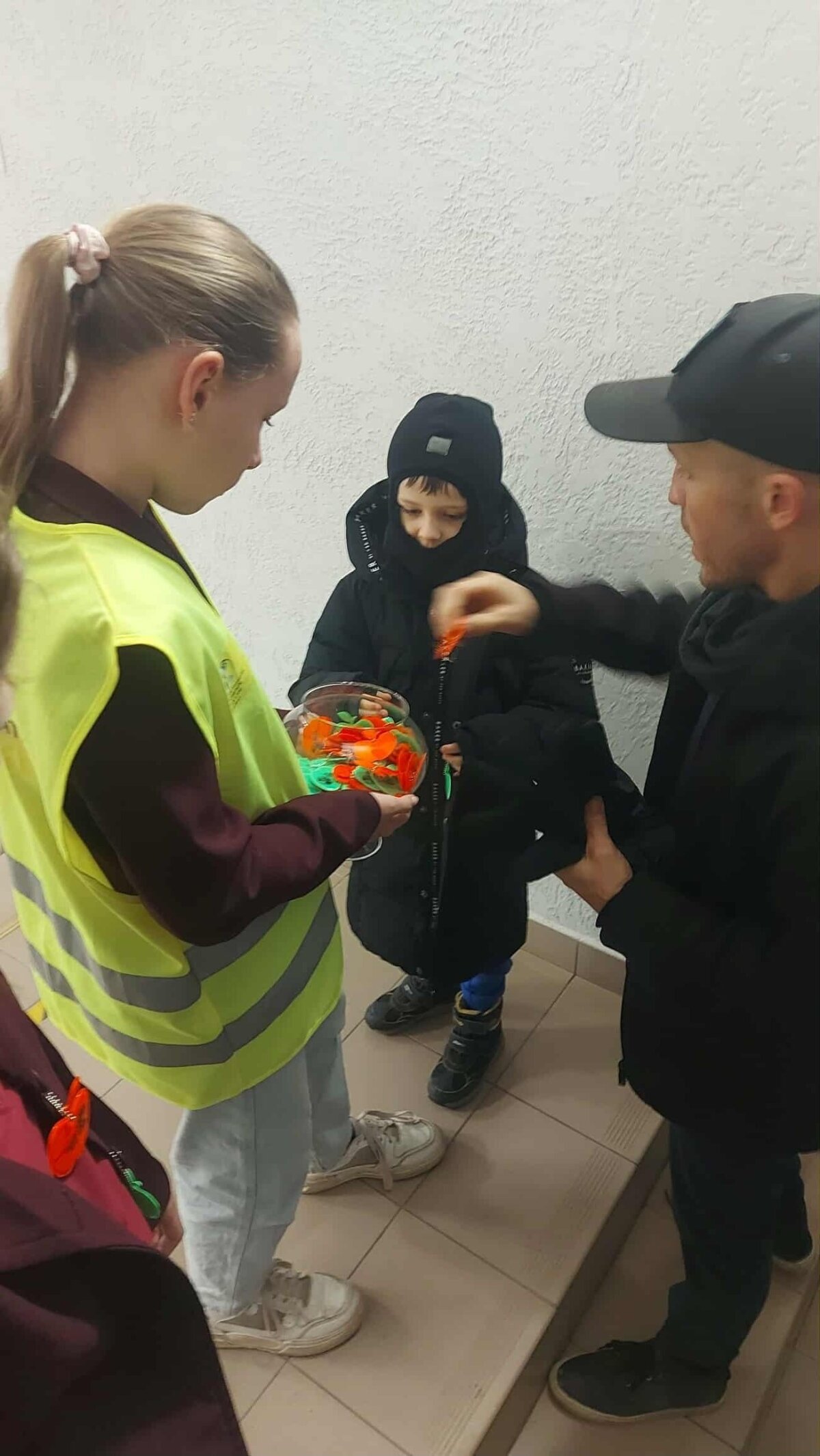 Tikrindami, ar bendruomenės nariai nešioja atšvaitus ir ar juos segi taisyklingai, išdalinome daugiau nei 200 atšvaitų, kuriuos dovanojo Raseinių rajono savivaldybės visuomenės sveikatos biuras.